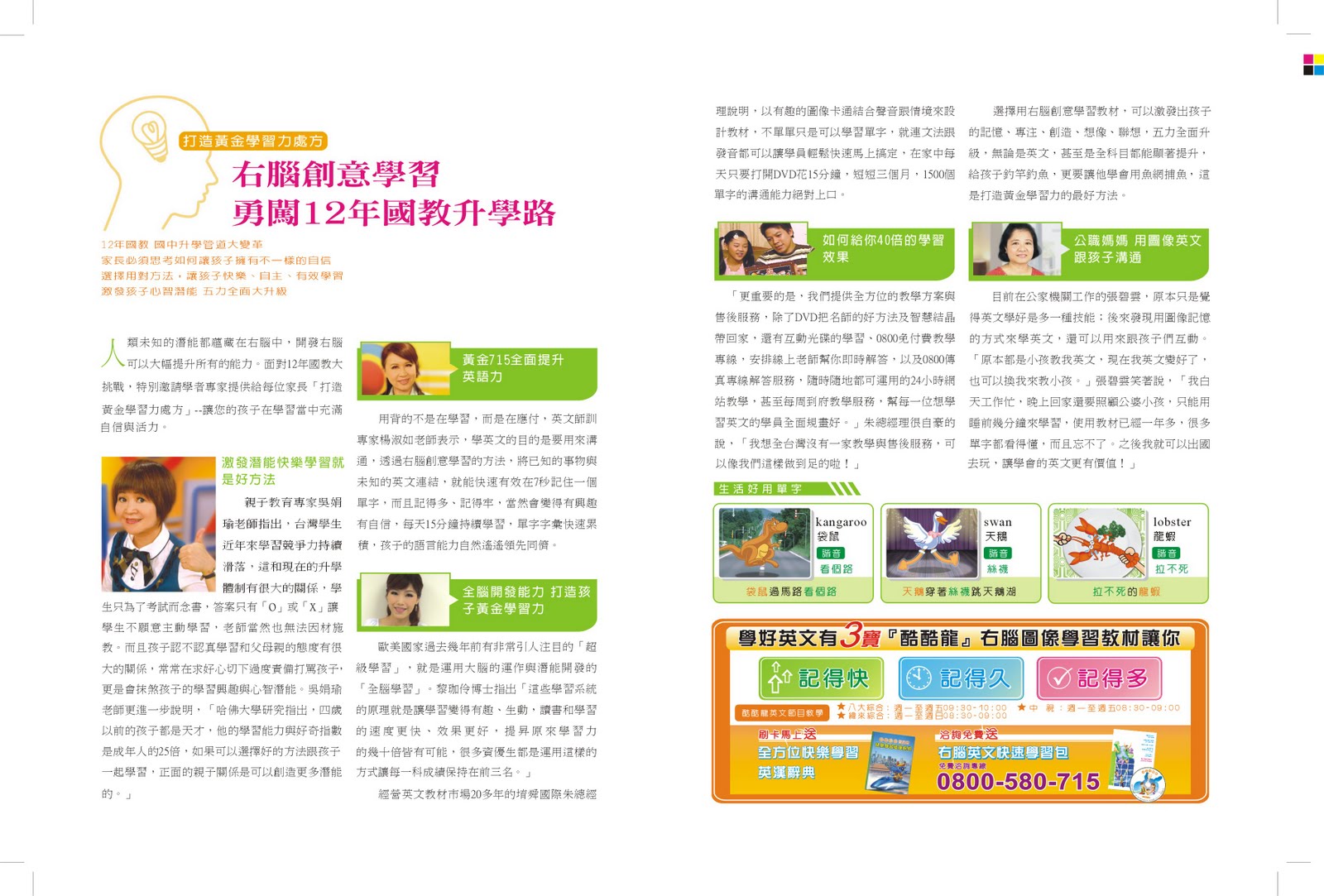 今天讓我們的老師來帶您與孩子一起來體驗超高速學習方法,右腦圖像把學英文變神奇變簡單。